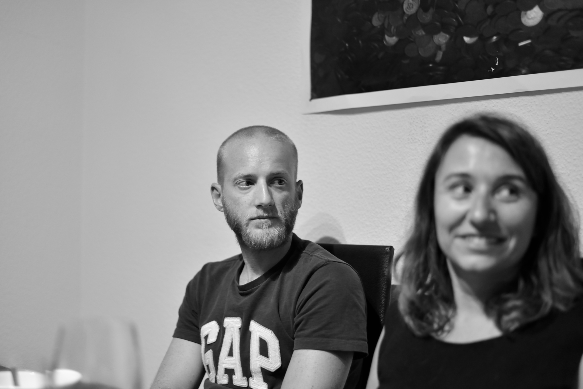 せっかく用意してもらった料理を写真に収め損ねてしまいましたが、ディナー・パーティーの後半でみんなのポートレート撮影をしてみました。今回は近い距離からのバストアップのみの撮影がしたかったので、50mmの単焦点レンズを装着し、みんなが思い出話で会話が弾んでいるタイミングで自然な表情を撮影してみました。初めてお会いする人が相手だと被写体の人物がカメラを意識しすぎてしまい、固い表情になってしまうことが多いのですが、今回は仲の良い古い友人たちだけだったので、いい感じに私のカメラを無視してもらえて、すごく自然な表情を捉えることができたように思います。